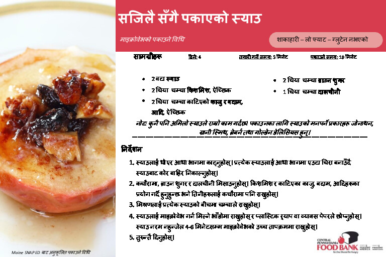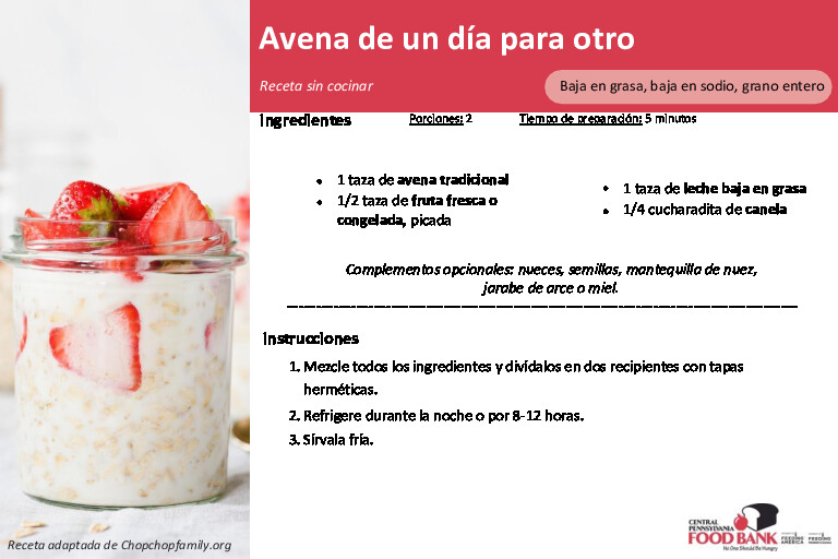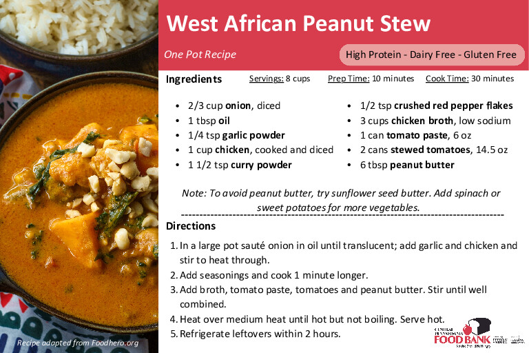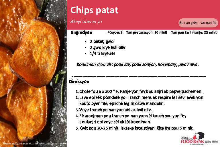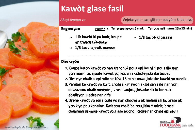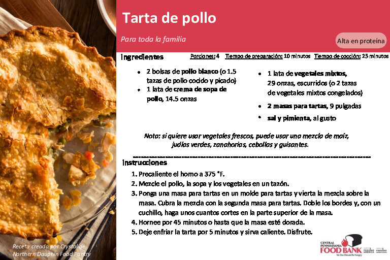 The Central Pennsylvania Food Bank’s Nutrition Education Team has assembled the recipes below and carefully created recipe cards translated in Spanish, and Haitian Creole