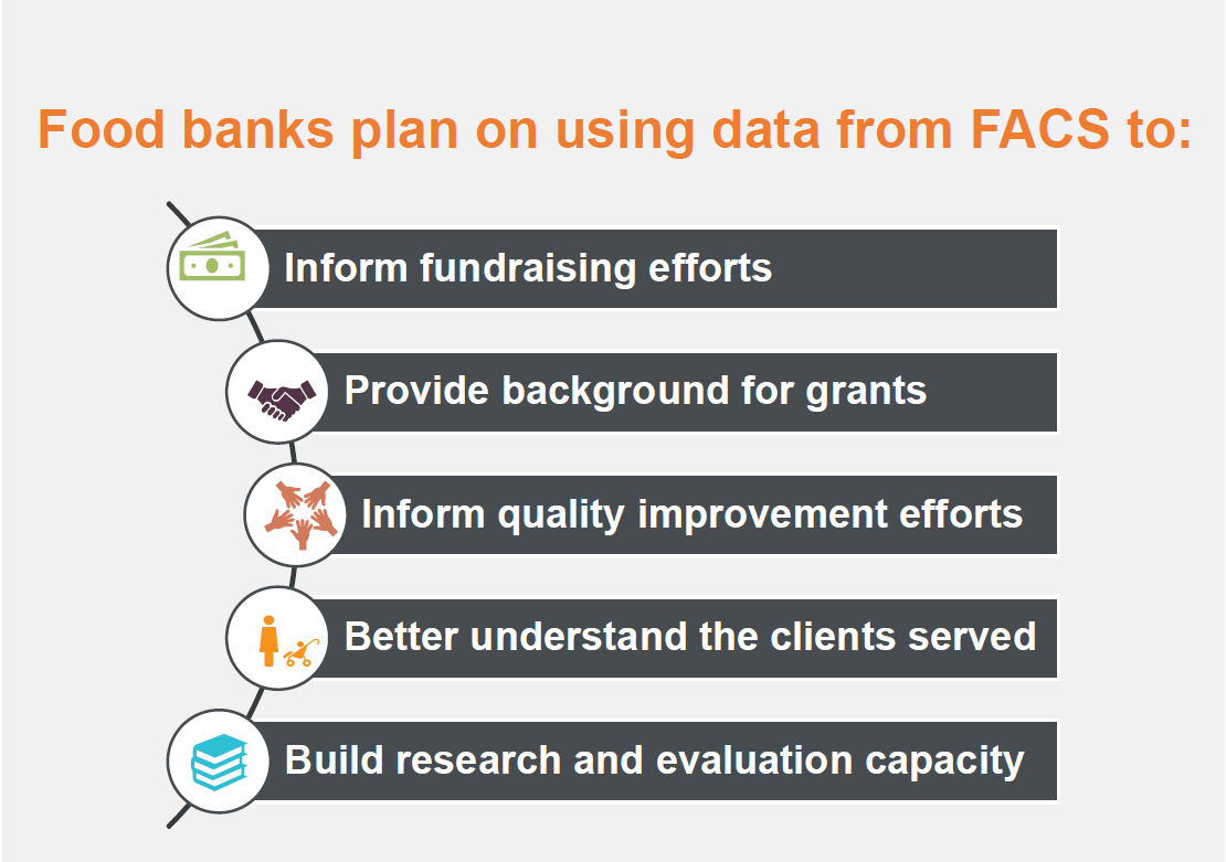 Service Insights (SI) and Feeding America Client Survey (FACS) help us do just that. Client-level data will inform conversations and provide insights for improving programs and services. It will help us tell a data-driven story to bust myths, foster empathy, and drive social change.